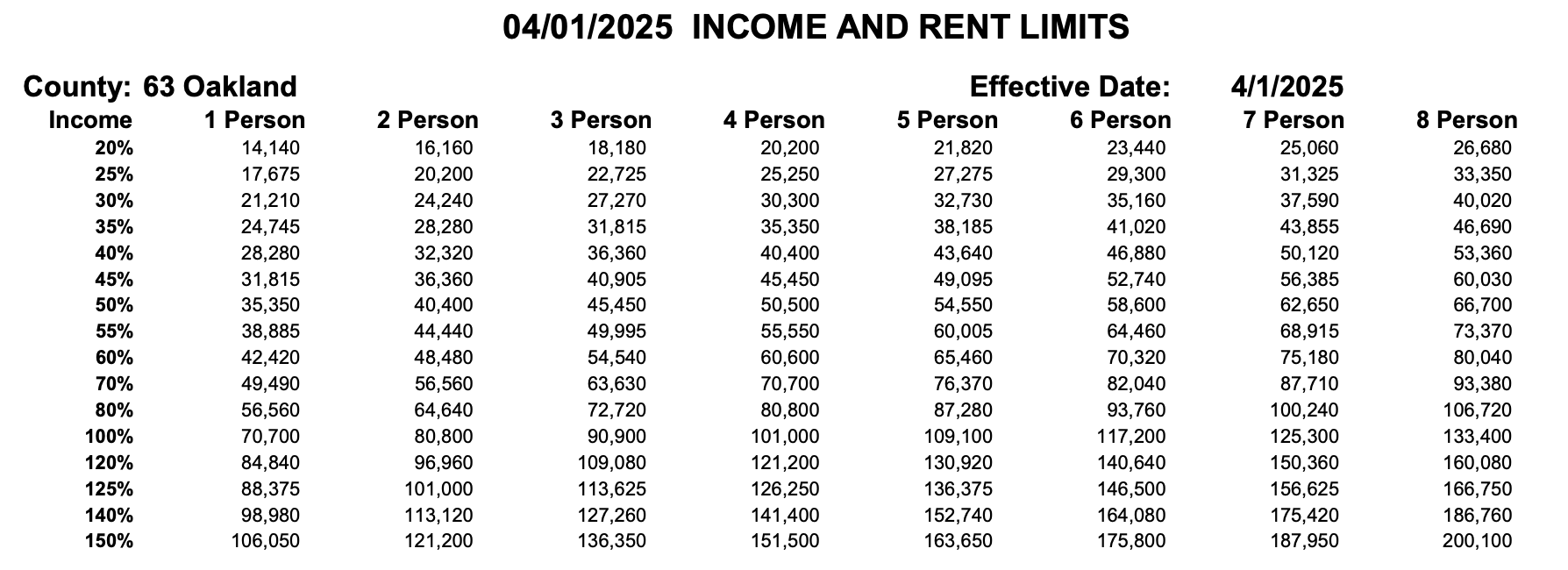 MSHDA is the Michigan State Housing Development Authority. They set the official income limits that Oakland Housing uses to determine eligibility for our programs.